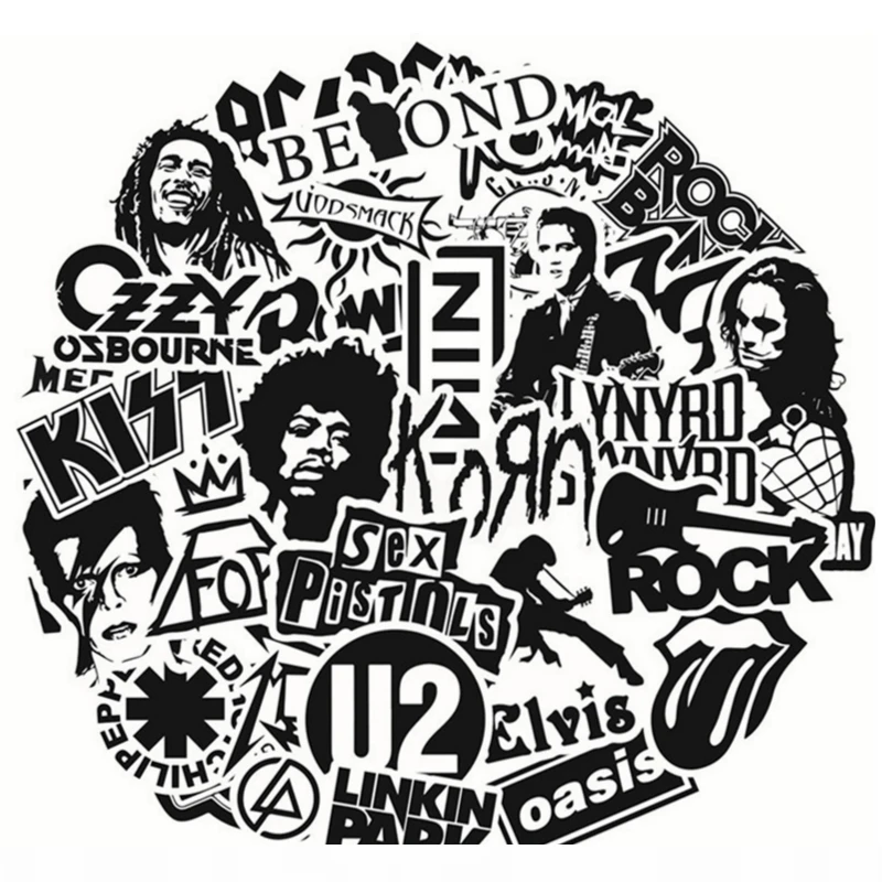 Name: Pegatinas de banda de Rock en blanco y negro, para Skateboard Punk, Motor de coche, portátil, guitarra, juguete clásico de niños, pegatinas de grafiti, 10/30/50 Uds.
